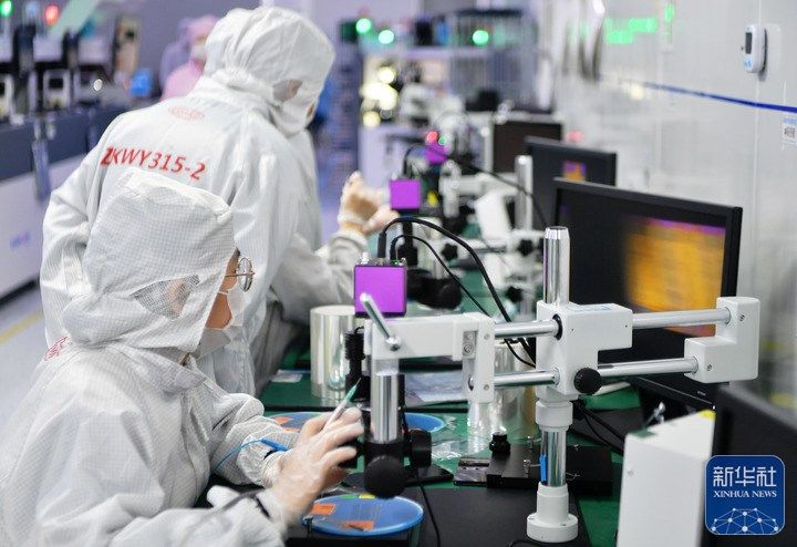 2月23日,在位于石狮高新区的福建中科光芯光电科技有限公司,机器开足马力生产光芯片。